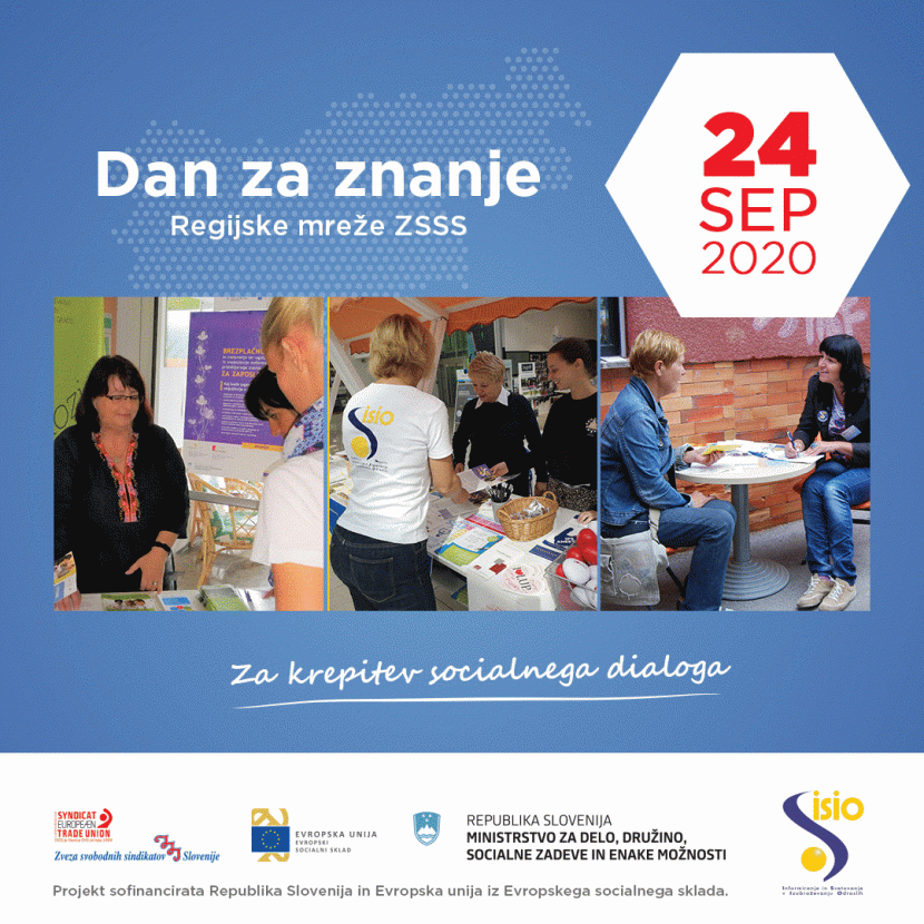 V okviru projekta “Za krepitev socialnega dialoga” se ZSSS pridružuje letošnjim Dnevom svetovalnih središč, ki potekajo med 23. in 25. septembra 2020. Dnevi svetovalnih središč potekajo tradicionalno tretji ali četrti teden v septembru, v času, ko se odrasli odločajo za vpis v izobraževanje. Poglavitni namen Dnevov je promocija formalnih in neformalnih izobraževalnih programov ter predstavitev svetovalne podpore odraslim v središčih ISIO ter pri njihovih partnerskih organizacijah.
