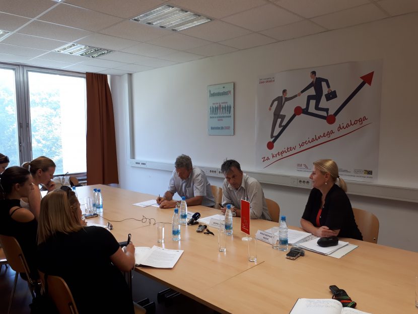 V okviru projekta smo v sredo, 29.8.2018 izvedli novinarsko konferenco, na kateri so izvršni sekretar ZSSS Andrej Zorko, generalni sekretar Združenja delodajalcev Slovenije (ZDS) Jože Smole in direktorica Ljudske univerze Jesenice Maja Radinovič Hajdič predstavili projekt »Za krepitev socialnega dialoga«, ki izhaja iz tega, da je sodelovanje socialnih partnerjev pri usposabljanju delavk in delavcev v hitro spreminjajočem se svetu nujno. Tudi delodajalska stran se strinja, da morajo biti stalnega usposabljanja deležni tudi delavci in delavke, ne le vodstveni kader. Slehernemu delavcu morajo biti na voljo ne samo izobraževalne vsebine, ki so v interesu podjetij, ampak se mora priučevati tudi t. i. mehkih znanj.